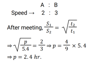 6. A and B started moving at the same time towards each other from points X and Y, respectively. After meeting on the way, A and B took 5.4 hours and p hours, respectively to reach Y and X, respectively. If the speed of B is 50% more than that of A, then what is the value of p? [Group D 02/09/2022 (Afternoon) ]