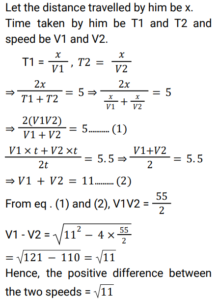 9. When a man travels equal distances at speeds of V₁ and V₂ km/h, his average speed is 5 km/h. But when he travels at these speeds for equal time periods, his average speed is 5.5 km/h. Find the positive difference between the two speeds (km/h). [Group D 20/09/2022 (Morning)]