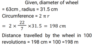 10. The diameter of a wheel is 63 cm. What is the distance covered by the wheel by making 100 revolutions? [Use π = 22/7] [Group D 26/09/2022 (Evening) ]