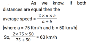 Time Speed and Distance (Railway Maths) (Part – III)Total Questions: 5011. A train running at a speed of 60 km/h crossed a pole in 1.5 min. The length of the train (in m) is: [RRB NTPC 29/12/2020 (Evening)](a) 1500(b) 600(c) 800(d) 1200Correct Answer: (a) 1500Solution:12. Parshotam and Anjilka started moving in opposite directions from the same place at a speed of 30 km/h and 3.5 km/h respectively. How far will they be from each other after 2.5 h? [RRB NTPC 30/12/2020 (Morning) ](a) 66.25 km(b) 8.75 km(c) 75 km(d) 83.75 kmCorrect Answer: (d) 83.75 kmSolution:13. A man travels a distance of 420 km by train which moves at 75 km/h and returns back by car with a speed of 50 km/h. Find his average speed of the whole journey? [RRB NTPC 30/12/2020 (Evening)](a) 68 km/h(b) 65 km/h(c) 66 km/h(d) 60 km/hCorrect Answer: (d) 60 km/hSolution:14. Train A, running at the speed of 80 km/hr, crossed train B, running at the speed of 70 km/hr, in the opposite direction. Both trains cross each other in 30 seconds. If the length of train A is 300 m, then the length of train B is: [RRB NTPC 04/01/2021 (Morning)](a) 850 m(b) 750 m(c) 950 m(d) 855 mCorrect Answer: (c) 950 mSolution:15. Driving his car at a speed of 30 km/h, Vinod reaches his office 5 min late. If his speed is 40 km/h, he reaches the office 3 min early. Find the distance he travels between his residence and his office. [RRB NTPC 04/01/2021 (Evening)](a) 16 km(b) 20 km(c) 15 km(d) 18 kmCorrect Answer: (a) 16 kmSolution:16. Two cars start from Ahmedabad and run in opposite directions with one car’s speed being 200 km/h more than the other. If they are 4500 km apart after 9 h, then the sum of the speeds of both the cars is: [RRB NTPC 04/01/2021 (Evening)](a) 500 km/h(b) 350 km/h(c) 250 km/h(d) 150 km/hCorrect Answer: (b) 350 km/hSolution:17. A bus passes two persons moving in the direction of the moving bus at a speed of 3 km/h and 5 km/h, respectively. The bus passes the first person in 10 s and the second person in 11 s. The speed of the bus is: [RRB NTPC 05/01/2021 (Morning)](a) 27 km/h(b) 25 km/h(c) 24 km/h(d) 28 km/hCorrect Answer: (b) 25 km/hSolution:18. Two men Start travelling from the same place in the same direction at the rate of 5 Km/h and 5.5 Km/h respectively. To be 8.5 km apart from each other, the time taken by them is: [RRB NTPC 07/01/2021 (Morning) ](a) 16h 15 min(b) 17 h(c) 4 h 15 min(d) 8 h 30 minCorrect Answer: (b) 17 hSolution:19. A student takes 1.5 hours from home to school at a speed of 5 km/h. By what percent should he increase his speed to reduce the time by 20% and cover the same distance from school to home? [RRB NTPC 08/01/2021 (Morning) ](a) 25%(b) 16%(c) 20%(d) 15%Correct Answer: (a) 25%Solution:20. A train covers 400 km at a uniform speed. If the speed had been 10 km/h more, it would have taken 2 hour less for the same journey. Find the speed of the train? [RRB NTPC 08/01/2021 (Evening) ](a) 40 km/h(b) 50 km/h(c) 55 km/h(d) 45 km/hCorrect Answer: (a) 40 km/hSolution:Submit Quiz« Previous12345Next »