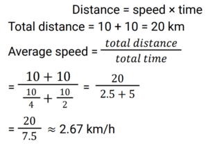 1. A cart runs at the rate of 4 km/h for the first 10 km and at 2 km/h for the second 10 km. Find the average speed of the cart in km/h. [RRB JE 27/06/2019 (Morning) ]