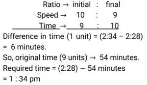 6. Due to engine failure, an express train runs at 9/10 of its normal speed and reaches at 2:34 pm instead of 2:28 pm. At what time did he start walking? [ALP Tier II 21/01/2019 (Afternoon) ]