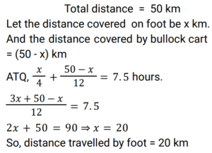 7. A pilgrim covered a distance of 50 km in 7.5 hours. He covered some distance by walking at the speed of 4 km/hr and some distance by sitting on the bullock cart which was running at the speed of 12 km/hr. The distance covered by walking is ___________ km. [ALP Tier II 21/01/2019 (Afternoon) ]