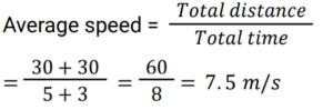 9. An object covers the first distance of 30m in 5s and takes 3s for the next distance of 30m. What is the average speed of the object? [ALP Tier II 21/01/2019 (Evening)]