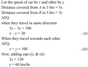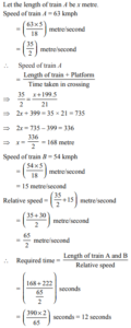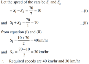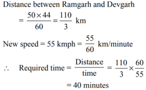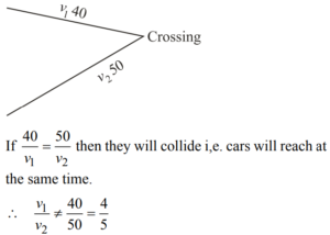 TIME, SPEED AND DISTANCE (TRAIN, BOAT & STREAM) (QUANTITATIVE APTITUDE) EPFO UPSCTotal Questions: 3521. On a journey across Kolkata, a taxi averages 50 km per hour for 50% of the distance. 40 km per hour for 40% of it and 20 km per hour for the remaining. The average speed in km/hour, for the whole journey is:(a) 42(b) 40(c) 35(d) 45Correct Answer: (b) 40Solution:22. Two cars are moving with speeds v1 , v2 towards a crossing along two roads. If their distances from the crossing be 40 metres and 50 metres at an instant of time then they do not collide if their speeds are such that(a)(b)(c)(d)Correct Answer: (d)Solution:23. Points A and B are 100 km apart on a highway. One car starts from A and another from B at the same time. If the cars travel in the same direction, they meet in 5 hours. If the cars travel towards each other, they meet in 1 hour. What is the speed of the faster car?(a) 70 km/hour(b) 40 km/hour(c) 60 km/hour(d) 80 km/hourCorrect Answer: (c) 60 km/hourSolution:24. A bus started its journey from Ramgarh and reached Devgarh in 44 minutes with its average speed of 50 km/ hour. If the average speed of the bus is increased by 5 km/hour, how much time will it take to cover the same distance?(a) 40 minutes(b) 38 minutes(c) 36 minutes(d) 31 minutesCorrect Answer: (a) 40 minutesSolution:25. The distance between two cities (M and N) is 569 km. A train starts from city M at 8 a.m. and travels towards city N at the rate of 53 kmph. Another train starts from city N at 9 am and travels towards city M at the rate of 76 kmph. At what time will the trains meet?(a) 12 : 30 p.m.(b) 1 : 00 p.m.(c) 2 : 30 p.m.(d) 1 : 30 p.m.Correct Answer: (b) 1 : 00 p.m.Solution:26. Train A travelling at 63 kmph can cross a platform 199.5 m long in 21 seconds. How much time would train A take to completely cross (from the moment they meet), train B, 222 m long and travelling at 54 kmph in opposite direction in which train A is travelling?(a) 16 seconds(b) 18 seconds(c) 12 seconds(d) 14 secondsCorrect Answer: (c) 12 secondsSolution:27. Two cars starts at the same time from A and B which is 120 km apart. If the two cars travel in opposite direction they meet after one hour and if they travel in same direction (from A towards B) then two cars crosses after 6 hours. What is the speed of car starting from A?(a) 70 kmph(b) 120 kmph(c) 60 kmph(d) Data inadequateCorrect Answer: (a) 70 kmphSolution:28. The distance between 2 places R and S is 42 km. Anita starts from R with a uniform speed of 4 km/h towards S and at the same time Romita starts form S towards R also with same uniform speed. They meet each other after 6 hours. The speed of Romita is(a) 18 km/hour(b) 20 km/hour(c) 3 km/hour(d) 8 km/hourCorrect Answer: (c) 3 km/hourSolution:29. A thief is noticed by a policeman from a distance of 200 m. the thief starts running and the policeman chases him. The thief and the policeman run at the rate of 10 km/ hr. and 11 km/hr. respectively. What is the distance between them after 6 minutes ?(a) 100 m(b) 190 m(c) 200 m(d) 150 mCorrect Answer: (a) 100 mSolution:30. Points ‘A’ and ‘B’ are 70 km apart on a highway and two cars start at the same time. If they travel in the same direction, they meet in 7 hours, but if they travel towards each other they meet in one hour. Find the speed of the tow cars (in km/hr).(a) 20, 30(b) 40, 30(c) 30, 50(d) 20, 40Correct Answer: (b) 40, 30Solution:Submit Quiz« Previous1234Next »