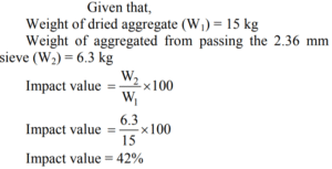 • Aggregate to be used for wearing course, the impact value shouldn't exceed 30%.