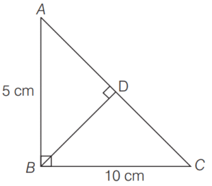 5. ABC is a triangle right angled at B. If AB = 5 cm and BC = 10 cm, then what is the length of the perpendicular drawn from the vertex B to the hypotenuse? [2019 (II) Evening Shift]