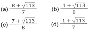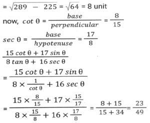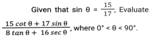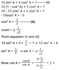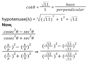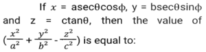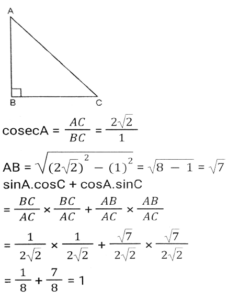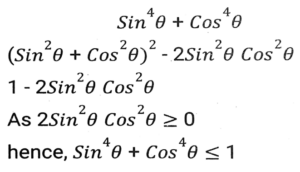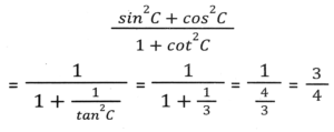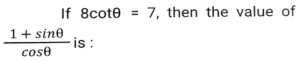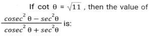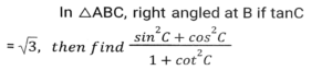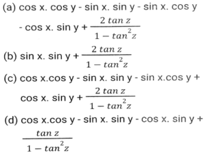 Trigonometry (Part-4)Total Questions: 5021. Simplify [SSC CGL 26/09/2024 (2nd Shift)](a)(b)(c)(d)Correct Answer: (a)Solution:22. Simplify [SSC CGL 26/09/2024 (2nd Shift)](a) 3/4(b) 16/3(c) 4/15(d) 3/16Correct Answer: (a) 3/4Solution:23. The greatest value of sin⁴θ + cos⁴θ is: [SSC CGL 26/09/2024 (3rd Shift)](a) 2(b) 1(c) 3(d) 4Correct Answer: (b) 1Solution:24. Simplify [SSC CGL 26/09/2024 (3rd Shift)](a) 2(b) 1(c) 3(d) 0Correct Answer: (b) 1Solution:25. Simplify [SSC CGL 26/09/2024 (3rd Shift)](a) 3/5(b) 5/6(c) 4/5(d) 6/7Correct Answer: (b) 5/6Solution:26. In right-angled triangle ABC, ∠B = 90° and angle A and angle C are acute angles. If cosecA = 2√2, then find the value of sinA.cosC + cosA.sinC. [SSC CGL 01/07/2024 (1st Shift)](a) √2(b) 1(c) 0(d) 2√2Correct Answer: (b) 1Solution:27. Simplify [SSC CGL 01/07/2024 (2nd Shift)](a)(b)(c)(d)Correct Answer: (a)Solution:28. 12 sin²A + 2 cos²A = 7, where 0° < A < 180°. Then cot A is: [SSC CHSL 01/07/2024 (4th Shift)](a)(b)(c)(d)Correct Answer: (b)Solution:29. What is the value of cos(x + y) - sin(x - y) + tan(2z)? [SSC CGL 02/07/2024 (4th Shift)](a)(b)(c)(d)Correct Answer: (c)Solution:30. Simplify [SSC CHSL 02/07/2024 (2nd Shift)](a) 23/49(b) 49/26(c) 26/23(d) 49/23Correct Answer: (a) 23/49Solution:Submit Quiz« Previous12345Next »