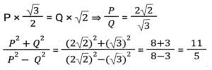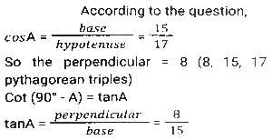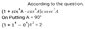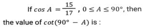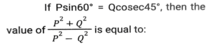 Trigonometry (Part-5)Total Questions: 5041. Find the value of- [Graduate Level 24/06/2024 (Shift-3)](a) -1(b) 0(c) 1(d) 1/2Correct Answer: (b) 0Solution:42. If sin (5x - 40º) = cos (5y + 40º), then the value of x + y is: [Graduate Level 24/06/2024 (Shift-3)](a) 18º(b) 15º(c) 40º(d) 20ºCorrect Answer: (a) 18ºSolution:43. The sides of a right angled triangle, right angled at B, are 6,8 and 10 units. C is the vertex opposite to the side with length 8 units. What is the value of tan²A + cos²C ? [Graduate Level 25/06/2024 (Shift-3)](a) 369/400(b) 125/400(c) 321/400(d) 325/400Correct Answer: (a) 369/400Solution:44. If sinθ + cosecθ = √5, then the value of sin³θ + cosec³θ is: [Graduate Level 26/06/2024 (Shift-3)](a) 1/√5(b) √5(c) 2√5(d) 0Correct Answer: (c) 2√5Solution:45. If cos2θ = 0, where θ is an acute angle, then find the value of sin (75º - θ). [Graduate Level 26/06/2024 (Shift-3)](a) √2 + 1(b) 1/2(c) √2 - 1(d) 1/√2Correct Answer: (b) 1/2Solution:46. Simplify [Graduate Level 26/06/2024 (Shift-4)](a) 5/11(b) 11/7(c) 11/7(d) 7/11Correct Answer: (c) 11/7Solution:47. Find the value of (tan²θ + tan⁴θ). [SSC CPO 03/10/2023 (1st Shift)](a) Sec²θ - Sec⁴θ(b) Cot²θ - Tan²θ(c) Sec⁴θ + Sec²θ(d) Sec⁴θ - Sec²θCorrect Answer: (d) Sec⁴θ - Sec²θSolution:48. If cosθ - sinθ = √2 sinθ, then (cosθ + sinθ) is: [SSC CPO 03/10/2023 (1st Shift)](a) -√2 sinθ(b) √2 tanθ(c) √2 cosθ(d) -√2 cosθCorrect Answer: (c) √2 cosθSolution:49. The value of (1 + sin⁴A - cos⁴A) cosec²A is: [SSC CPO 03/10/2023 (2nd Shift)](a) -1(b) 1(c) -2(d) 2Correct Answer: (d) 2Solution:50. Simplify [SSC CPO 03/10/2024 (2nd Shift)](a) 8/15(b) 7/15(c) √2/15(d) 2√2/15Correct Answer: (a) 8/15Solution:Submit Quiz« Previous12345