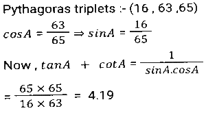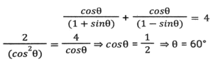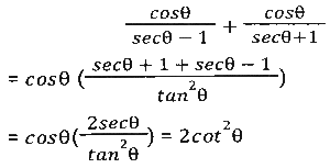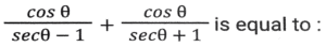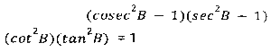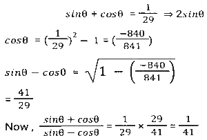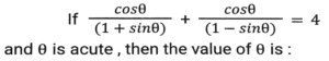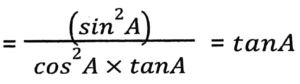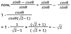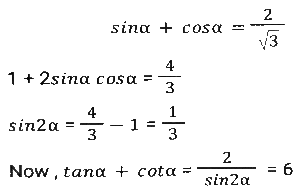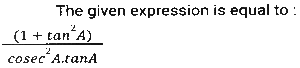 Trigonometry (Part-6)Total Questions: 5011. Simplify [SSC CPO 05/10/2023 (3rd Shift)](a) -√2(b) -1(c) 1(d) √2Correct Answer: (a) -√2Solution:12. Simplify [SSC CHSL 02/08/2023 (1st Shift)](a) 2sec²θ(b) 2cot²θ(c) 2cos²θ(d) 2sin²θCorrect Answer: (b) 2cot²θSolution:13. Simplify [SSC CHSL 02/08/2023 (2nd Shift)](a) 1(b) 0(c) √3(d) √2Correct Answer: (d) √2Solution:14. If cosθ + secθ = √3, then the value of cos³θ + sec³θ is : [SSC CHSL 02/08/2023 (3rd Shift)](a) 0(b) 1/√3(c) √3(d) 2√3Correct Answer: (a) 0Solution:15. Solve it- [SSC CHSL 02/08/2023 (4th Shift)](a) 4.19(b) 2.76(c) 3.19(d) 5.23Correct Answer: (a) 4.19Solution:16. Solve it- [SSC CHSL 03/08/2023 (1st Shift)](a) 60º(b) 15º(c) 45º(d) 30ºCorrect Answer: (a) 60ºSolution:17. If sinα + cosα = 2/√3 then what is (tanα + cotα) equal to? [SSC CHSL 03/08/2023 (1st Shift)](a) 1(b) 2(c) 6(d) 0Correct Answer: (c) 6Solution:18. The value of (cosec²B - 1) (sec²B - 1) is: [SSC CHSL 03/08/2023 (2nd Shift)](a) 4(b) 3(c) 2(d) 1Correct Answer: (d) 1Solution:19. Solve it- [SSC CHSL 03/08/2023 (2nd Shift)](a) 1/41(b) 43/29(c) 41/29(d) 1/43Correct Answer: (a) 1/41Solution:20. Simplify [SSC CHSL 03/08/2023 (3rd Shift)](a) Sec²A(b) Sec A(c) Tan A(d) Tan²ACorrect Answer: (c) Tan ASolution:Submit Quiz« Previous12345Next »