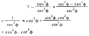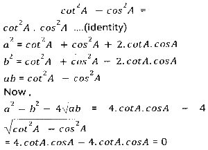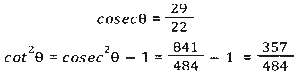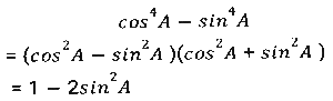 Trigonometry (Part-6)Total Questions: 5021. cos⁴A - sin⁴A is equal to : [SSC CHSL 03/08/2023 (3rd Shift)](a) 2 cos²A + 1(b) 1 - 2 sin²A(c) 2 sin²A - 1(d) -(2sin²A + 1)Correct Answer: (b) 1 - 2 sin²ASolution:22. Solve it- [SSC CHSL 03/08/2023 (4th Shift)](a) 49/484(b) 357/484(c) 225/484(d) 7/22Correct Answer: (b) 357/484Solution:23. What is the value of the expression. [SSC CHSL 04/08/2023 (4th Shift)](a) secA + cosecA(b) sinA + cosA(c) sinA - cosA(d) secA - cosecACorrect Answer: (a) secA + cosecASolution:24. Simplify the expression. [SSC CHSL 04/08/2023 (4th Shift)](a) 1(b) 0(c) -1(d) 2Correct Answer: (a) 1Solution:25. If secθ + tanθ = √3, then the possitive value of sinθ + cosθ is : [SSC CHSL 04/08/2023 (3rd Shift)](a)(b)(c)(d)Correct Answer: (a)Solution:26. If 2Tan²A + 4Cos⁴A = 3, then the possible value of A is : [SSC CHSL 04/08/2023 (4th Shift)](a) 45º(b) 60º(c) 0º(d) 30ºCorrect Answer: (a) 45ºSolution:27. If a = cotA + cosA and b = cotA - cosA, then find the value of a² - b² - 4 √ab. [SSC CHSL 04/08/2023 (4th Shift)](a) 0(b) -1(c) 1(d) -4Correct Answer: (a) 0Solution:28. The given expression is equal to: [SSC CHSL 07/08/2023 (1st Shift)](a) sin²Φ cos²Φ(b) sin²Φ cot²Φ(c) cot²Φ cos²Φ(d) tan²Φ cos²ΦCorrect Answer: (b) sin²Φ cot²ΦSolution:29. Find the value of cot²B - cosec²B for 0 < B <90º. [SSC CHSL 07/08/2023 (1st Shift)](a) 1(b) 2(c) -1(d) -2Correct Answer: (c) -1Solution:1 + cot²B = cosec²B cot²B - cosec²B = -130. In ΔOPQ, right-angled at P, OP = 7 cm and OQ - PQ = 1cm. Determine the values of sin Q + cos Q . [SSC CHSL 07/08/2023 (2nd Shift)](a) 13/25(b) 21/25(c) 31/25(d) 33/25Correct Answer: (c) 31/25Solution:Submit Quiz« Previous12345Next »
