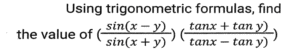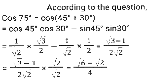 Trigonometry (Part-7)Total Questions: 5021. Solve it- [SSC CGL 14/07/2023 (3rd Shift)](a)(b)(c)(d)Correct Answer: (a)Solution:22. Simplify the following. [SSC CGL 14/07/2023 (4th Shift)](a) 1 + sinα cosα(b) tanα(c) 1 - sinα cosα(d) secαCorrect Answer: (c) 1 - sinα cosαSolution:23. If tan π/6 + sec π/6 = x, then find x. [SSC CGL 17/07/2023 (2nd Shift)](a) √3(b) 1/√3(c) -1/√3(d) 2/√3Correct Answer: (a) √3Solution:24. If cosx = -(1/2), x lies in third quadrant, then tanx = ? [SSC CGL 17/07/2023 (3rd Shift)](a) √3(b) √3/2(c) 2/√3(d) 1/√3Correct Answer: (a) √3Solution:25. Using cos (A+B) = cosA cosB - sinA sinB, find the value of cos75º. [SSC CGL 17/07/2023 (3rd Shift)](a)(b)(c)(d)Correct Answer: (c)Solution:26. Solve it- [SSC CGL 17/07/2023 (4th Shift)](a) 1(b) 2(c) -1(d) 0Correct Answer: (a) 1Solution:27. Simplify [SSC CGL 18/07/2023 (1st Shift)](a) -2(b) 2(c) 0(d) 1Correct Answer: (d) 1Solution:28. If tan A/2 = x, then find x. [SSC CGL 18/07/2023 (1st Shift)](a)(b)(c)(d)Correct Answer: (c)Solution:29. The value of- [SSC CGL 18/07/2023 (2nd Shift)](a) 0(b) 2(c) 3(d) 1Correct Answer: (d) 1Solution:30. Simplify the following: [SSC CGL 18/07/2023 (2nd Shift)]sin 2x + 2 sin4x + sin 6x(a) 4 cos²x sin 4x(b) 4 cos²x sin x(c) 2 cos²x sin4x(d) 4 sin²x sin4xCorrect Answer: (a) 4 cos²x sin 4xSolution:Submit Quiz« Previous12345Next »