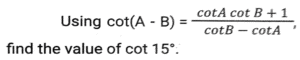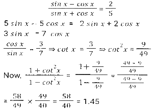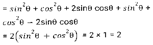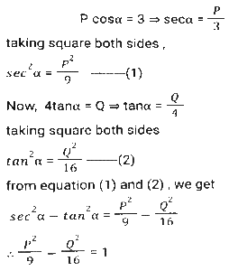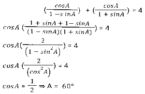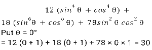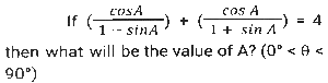 Trigonometry (Part-7)Total Questions: 5031. If sin A = -(3/5), A lies in III quadrant, the value of sec A is: [SSC CGL 18/07/2023 (2nd Shift)](a) -(4/5)(b) -(3/4)(c) -(3/4)(d) 3/4Correct Answer: (b) -(3/4)Solution:32. Find the value of the following expression. [SSC CGL 18/07/2023 (3rd Shift)]12 (sin⁴θ + cos⁴θ) + 18 (sin⁶θ + cos⁶θ) + 78 sin²θ cos²θ(a) 30(b) 40(c) 10(d) 20Correct Answer: (a) 30Solution:33. Simplify [SSC CGL 18/07/2023 (4th Shift)](a) √3 + 1(b) √3 - 1(c) 2 - √3(d) 2 + √3Correct Answer: (c) 2 - √3Solution:34. Simplify [SSC CGL 19/07/2023 (1st Shift)](a) 2.25(b) 1.45(c) 3.75(d) 5.25Correct Answer: (b) 1.45Solution:35. Find the value of (sinθ + cosθ)² + (sinθ - cosθ)² [SSC CGL 19/07/2023 (1st Shift)](a) 4(b) 0(c) 2(d) 1Correct Answer: (c) 2Solution:36. Simplify [SSC CGL 19/07/2023 (1st Shift)](a) 90º(b) 45º(c) 60º(d) 30ºCorrect Answer: (c) 60ºSolution:37. Simplify [SSC CGL 19/07/2023 (2nd Shift)](a) 2 + √3(b) 2 - √3(c) √3 -1(d) √3 + 1Correct Answer: (a) 2 + √3Solution:38. If P cos α = 3 and 4 tan α =Q, then what is the relation between P and Q which is independent of α ? [SSC CGL 19/07/2023 (2nd Shift)](a)(b)(c)(d)Correct Answer: (c)Solution:39. For any acute angle θ, sinθ + sin²θ = 1, then the value of cos² +cos⁴θ is = ______ . [SSC CGL 19/07/2023 (3rd Shift)](a) 0(b) 1(c) 2(d) -1Correct Answer: (b) 1Solution:40. If cosx + sinx = √2cosx, what is the value of (cosx - sinx)² + (cosx + sinx)² ? [SSC CGL 19/07/2023 (4th Shift)](a) 2(b) 1(c) 0(d) 1/√2Correct Answer: (a) 2Solution:Submit Quiz« Previous12345Next »