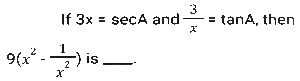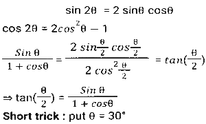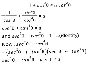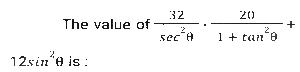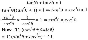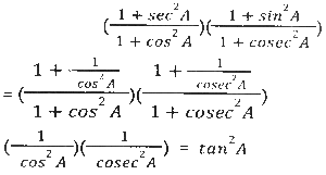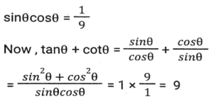 Trigonometry (Part-8)Total Questions: 5011. What is the value of tan θ/2 ? [SSC CGL 26/07/2023 (4th Shift)](a)(b)(c)(d)Correct Answer: (d)Solution:12. Simplify [SSC CGL 27/07/2023 (2nd Shift)](a) 3(b) 9(c) 1(d) 1/9Correct Answer: (c) 1Solution:13. If tan⁴θ + tan⁴θ = 1, what is the value of 11 (cos⁴θ + cos²θ) ? [SSC CGL 27/07/2023 (3rd Shift)](a) -11(b) 8(c) 0(d) 11Correct Answer: (d) 11Solution:14. Simplify [Graduate Level 27/06/203 (Shift-4)](a) 20(b) 32(c) 24(d) 12Correct Answer: (d) 12Solution:15. If sinθ + cosθ = √11/3, then what is tanθ + cotθ equal to? [Graduate Level 27/06/2023 (Shift-4)](a) 5(b) 9(c) 7(d) 11Correct Answer: (b) 9Solution:16. If 1 + sin²θ = a cos²θ, then find sec⁴θ - tan⁴θ. [Graduate Level 30/06/2023 (Shift-1)](a) a⁻²(b) a⁻¹(c) a(d) a²Correct Answer: (c) aSolution:17. In a triangle PQR, if = 3cm, PR = 5cm and sin P = 3/5, then ∠Q equals: [Higher Secondary 28/06/2023 (Shift-3)](a) π/3(b) π/2(c) π/4(d) π/6Correct Answer: (b) π/2Solution:18. The value of cosec41º sec49º is: [Higher Secondary 30/06/2023 (Shift-2)](a) 1(b) 0(c) 1/4(d) 1/2Correct Answer: (b) 0Solution:19. If Sin x + Sin²x = 1, then what is the value of Cos⁸x + 2 Cos⁶x + Cos⁴x ? [SSC CGL Tier II (26/06/2023)](a) 2(b) 0(c) 4(d) 1Correct Answer: (d) 1Solution:20. What is the value of- [SSC CHSL 09/03/2023 (1st Shift)](a) cos²A(b) cosec²A(c) sec²A(d) tan²ACorrect Answer: (d) tan²ASolution:Submit Quiz« Previous12345Next »