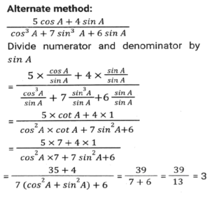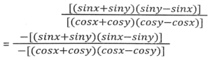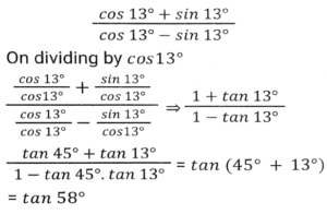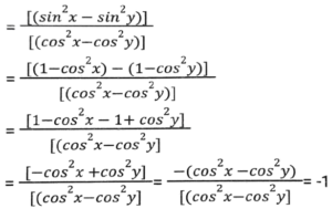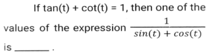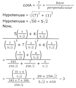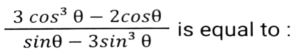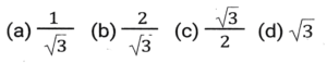 TrigonometryTotal Questions: 5011. Find the value of [SSC CHSL 05/07/2024 (2nd Shift)](a)(b)(c)(d)Correct Answer: (d)Solution:12. Simplify [SSC CHSL 03/07/2024 (3rd Shift)](a) tan²θ(b) cot²θ(c) tan θ(d) cot θCorrect Answer: (d) cot θSolution:13. Find the value [SSC CHSL 01/07/2021 (3rd Shift)](a) 2(b) 0(c) 3(d) 1Correct Answer: (c) 3Solution:14. What is the value of [SSC CPO 29/06/2024 (3rd Shift)](a) 0(b) 1(c) -1(d) 2Correct Answer: (c) -1Solution:15. Simplify [SSC CPO 28/06/2024 (1st Shift)](a) cot58⁰(b) tan32⁰(c) tan58⁰(d) cos26⁰Correct Answer: (c) tan58⁰Solution:16. If (sin x - sin y) = a and (cos x + cos y) = b, then find the value of (sin x sin y + cos x cos y). [SSC CPO 27/06/2024 (2nd Shift)](a)(b)(c)(d)Correct Answer: (c)Solution:17. Simplify [SSC CPO 27/06/2024 (1st Shift)](a)(b)(c)(d)Correct Answer: (a)Solution:18. If 3 sec⁴θ + 8 = 10 sec²θ, then the value of tanθ can be: [Graduate Level 26/06/2024 (Shift-4)](a)(b)(c)(d)Correct Answer: (d)Solution:19. If cot⁴A + cot²A = 1, then find the vlaue of cos⁴A - 3cos²A. [SSC CHSL Tier II 02/11/2023 ](a) -1(b) -2(c) 2(d) 1Correct Answer: (a) -1Solution:20. If cot²θ = 1 - e², then the value of cosec θ + cot³θ sec θ is: [SSC CPO 05/10/2023 (3rd Shift)](a)(b)(c)(d)Correct Answer: (a)Solution:Submit Quiz« Previous12345Next »