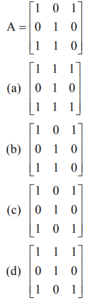 Solution:Let the elements be a, b, c on which the relation is defined. Then from the matrix we can say that the relation given is