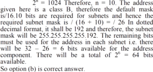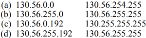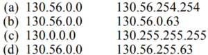 Solution:The first address is subnet 1 = 130.56.0.1 The last address is subnet 1 = 130.560.62 the first address of is the address 130.56.00 and subnet mask/26 connected by AND, and next can be estimated as 10000010 00000010.0.0
