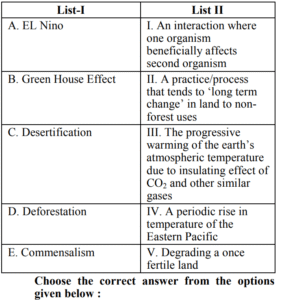 UGC NET/JRF EXAM, December 2020/June 2021 Paper-II (HOME SCIENCE)Total Questions: 10081. Project size is decided by(a) Government(b) Financial Institutions(c) Project formulation team(d) Project engineerCorrect Answer: (c) Project formulation teamSolution:Project size is decided by project formulation team.82. Identify from the list the values of working environment :A. Punctuality B. Creativity C. Variety in work D. Economic reward E. Flexibility Choose the correct answer from the options given below :(a) A, B, C only(b) B, D, E only(c) B, C, D only(d) A, C, E onlyCorrect Answer: (d) A, C, E onlySolution:Values of working environment- • Punctuality • Variety in work • Flexibility83. The expected standards of a consumer education material areA. Accuracy B. Completeness C. Commercial D. Objectivity E. Discriminatory Choose the correct answer from the options given below : (a) A, C, D only(b) A, B, D, only(c) A, C, E only(d) B, D, E onlyCorrect Answer: (b) A, B, D, onlySolution:The expected standards of a consumer education material are :- • Accuracy • Completeness • Objectivity84. From the list given below which are the indicator of static workA. Increased muscle blood flow B. Sustained muscle contraction C. Increased muscle oxygen consumption D. Oxygen independent energy production E. Glycogen and blood sugar is used to produce energy Choose the correct answer from the options given below :(a) A, B and C only(b) B, C and E only(c) B, D and E only(d) A, B and D onlyCorrect Answer: (d) A, B and D onlySolution:In static work muscle remain contracted for a period of time but there is no movement. A muscle which is heavily contracted squeezes against the blood vessels next to it. Indicators of static work – • Increased muscle blood flow • Sustained muscle contraction • Oxygen independent energy production85. From the styles given below which of the following styles are part of Late Georgian StyleA. Adam B. William and Marry C. Happle White D. Chippendale E. Sheraton Choose the correct answer from the options given below : (a) B, C, D, E only(b) A, C, D, E only(c) A, B, D, E only(d) A, B, C, D onlyCorrect Answer: (b) A, C, D, E onlySolution:Georgian style is characterized by its focus on dainty structure and fine lines. Adam, Happle white, Chippendale and Sheraton are part of Late Georgian style.86. Match List I with List II(a) A-I, B-II, C-VI, D-V, E-IV, F-III(b) A-V, B-III, C-I, D-IV, E-VI, F-II(c) A-III, B-VI, C-IV, D-II, E-V, F-I(d) A-III, B-I, C-V, D-II, E-VI, F-IVCorrect Answer: (b) A-V, B-III, C-I, D-IV, E-VI, F-IISolution:87. Match the List I with List II(a) A-I, B-II, C-III, D-V, E-IV(b) A-III, B-I, C-IV, D-II, E-V(c) A-III, B-I, C-V, D-IV, E-II(d) A-IV, B-III, C-V, D-IV, E-ICorrect Answer: (d) A-IV, B-III, C-V, D-IV, E-ISolution:88. Arrange the steps of organization process in sequence :A. Delegating the work B. Grouping activities C. Delegation of authority D. Identifying and classifying the activities E. Coordination Choose the correct answer from the options given below :(a) D, B, C, A, E(b) A, B, C, D, E(c) B, A, D, C, E(d) D, C, A, B, ECorrect Answer: (a) D, B, C, A, ESolution:Correct arrangement of steps of organization process- • Identifying and classifying the activities • Grouping activities • Delegation of authority • Delegating the work • Coordination89. Arrange the steps of buying process in sequence :A. Evaluate the product B. Exchange product with money C. Find the product D. Recognise the need E. Develop interest in the product Choose the correct answer from the options given below : (a) B, A, C, D, E(b) D, C, E, A, B(c) D, E, C, A, B(d) A, D, C, B, ECorrect Answer: (b) D, C, E, A, BSolution:Correct sequence of steps of buying process are : Recognize the need Find the product Develop interest in the product Evaluate the product Exchange product with money90. Given below are two statements, one is labeled as Assertion A and the other is labeled as Reason R.Assertion (A) : The color of ripe watermelon is higher in strength as compared to color of strawberry ice cream. Reason (R) : The colors at normal value as in watermelon are always in their pure form and thus are full intensity colors. In light of the above statements, choose the most appropriate answer from the options given below :(a) Both A and R are correct and R is the correct explanation of A(b) Both A and R are correct but R is not the correct explanation of A(c) A is correct but R is not correct(d) A is not correct but R is correctCorrect Answer: (a) Both A and R are correct and R is the correct explanation of ASolution:The color of ripe watermelon is higher in strength as compared to color of strawberry ice cream because the colors at normal value as in watermelon are always in their pure form and thus are full intensity colors. Both A and R are correct and R is the correct explanation of A.Submit Quiz« Previous12345678910Next »