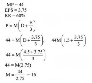 10. If the market price of PQR Ltd, is 44, EPS is 3.75 and the retention ratio is 60%, then the multiplier according to Graham and Dodd Model of Dividend policy is: