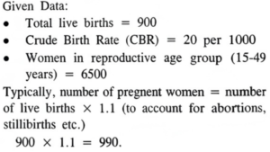The mid-year population of PHC X for the year 2023 was 45,000. The crude birth rate and crude death rate for PHC X of the same year were 20 and 5 per thousand population respectively.