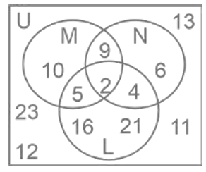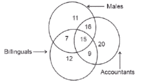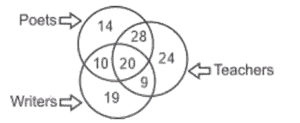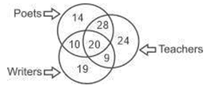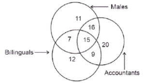 Venn – Diagram – Railway Reasoning part – 1Total Questions: 5021. The given Venn diagram shows the number of students in a class who play a particular sport. How many students play hockey as well as football? [ALP Tier II 21/01/2019 (Afternoon)](a)51(b)8(c)7(d)15Correct Answer: (d)15Solution:Total number of students who play Hockey as well as football = 1522. Select the correct set that represents the following Venn diagram. [RRB ALP 20/08/2018 (Afternoon)](a) Flesh-eating animals, tigers, cows(b) Flesh-eating animals, tigers, lions(c) Grass-eating animals, goat, buffalo(d) Grass-eating animals, cows, deerCorrect Answer: (a) Flesh-eating animals, tigers, cowsSolution:23. In the given diagram, triangle represents the set of people who possess a car, square represents the set of people who possess a house; and circle represents the set of people who possess gold. [RRB ALP Tier - I 30/08/2018 (Afternoon)]What is the total number of people who possess a car and gold but do not have a house?(a) VII + IV(b) IV + III(c) IV(b) IV + IIICorrect Answer: (c) IVSolution:From the venn diagram we can see that the total number of people who possess a car and gold but do not have a house = IV24. The diagram that represent rational numbers, irrational number and real number is: [RRB ALP Tier - I 30/08/2018 (Evening)](a)(b)(c)(d)Correct Answer: (d)Solution:25. In the following diagram, Set U is the universal set, and Set L, M and N represent students studying History, Geography and Language, respectively. Based on the given data, what is the total number of students studying Language and Geography but not History? [RRB ALP Tier - I 31/08/2018 (Evening)](a) 19(b) 11(c) 9(d) 2Correct Answer: (c) 9Solution:From the venn diagram we can say that the total number of students studying Language and Geography but not History are 9.26. Study the given diagram carefully and answer the question. The numbers in different sections indicate the number of persons. [Group - D 17/08/2022 (Afternoon)]How many such accountants are there who are also bilinguals?(a) 15(b) 24(c) 9(d) 22Correct Answer: (b) 24Solution:Those who are Accountants as well as Bilinguals = 15 + 9 = 24.27. Study the given diagram carefully and answer the following question. The numbers in different sections indicate the number of persons who have suffered from different diseases. [Group - D 18/08/2022 ( Evening)]How many people have suffered from both Allergy and Chicken pox but NOT Common cold?(a) 17(b) 32(c) 45(d) 25Correct Answer: (a) 17Solution: People have suffered from both Allergy and Chicken pox but NOT Common cold are = 1728. Study the given diagram carefully and answer the following question. The numbers in different sections indicate the number of persons who like different dry fruits during snack time. [Group - D 22/08/2022 ( Morning)]How many people like Hazelnut but NOT Cashew?(a) 39(b) 139(c) 120(d) 15Correct Answer: (b) 139Solution:People who like Hazelnut but NOT Cashew = 120 + 19 = 139.29. Study the given diagram carefully and answer the question. The numbers in different sections indicate the number of persons. [Group - D 22/08/2022 ( Afternoon)]How many such doctors are there who are also joggers but NOT NRIs ?(a) 28(b) 75(c) 45(d) 56Correct Answer: (c) 45Solution:Doctors who are also joggers but not NRI’s = 45.30. Study the given diagram carefully and answer the question. The numbers in different sections indicate the number of persons [Group - D 22/08/2022 ( Evening)]Which of the following statements is correct on the basis of the above diagram?(a) The number of teachers who are both writers and poets is 20.(b) The number of poets who are also teachers but not writers is 48.(c) The number of poets who are also teachers is 44.(d) The number of writers who are neither teachers nor poets is 10.Correct Answer: (a) The number of teachers who are both writers and poets is 20.Solution:The number of teachers who are both writers and poets is 20.Submit Quiz« Previous12345Next »