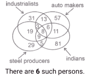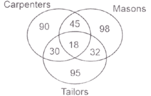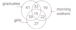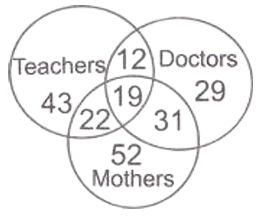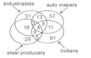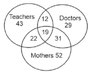 Venn – Diagram – Railway Reasoning part – 1Total Questions: 5031. Study the diagram and answer the question that follows. The numbers in different Sections indicate the number of persons. How many Indian industrialists make autos but are NOT steel producers? [Group - D 23/08/2022 ( Morning) ](a) 6(b) 3(c) 8(d) 13Correct Answer: (a) 6Solution:32. Study the following diagram and answer the question based on it. The numbers given in different parts represent the number of persons belonging to that part. How many women are speakers but not professors, and how many professors are speakers but not women? [Group - D 23/08/2022 ( Evening)](a) 62 and 49, respectively(b) 47 and 49, respectively(c) 77 and 49, respectively(d) 62 and 32, respectivelyCorrect Answer: (a) 62 and 49, respectivelySolution:Number of women who are speakers but NOT professors = 62 Number of professors who are speakers but NOT women = 4933. Study the given diagram carefully and answer the following question. The numbers in different sections indicate the number of persons in different professions. [Group - D 24/08/2022 ( Morning)]How many Masons are Tailors as well?(a) 50(b) 18(c) 32(d) 45Correct Answer: (a) 50Solution:Number of masons who are also tailors = 18 + 32 = 5034. In the following diagram, R = Students, P = Roads, W = Girls, and Z = Psychology. The numbers given in different parts represent the number of persons belonging to that part. How many girls are students of psychology? [Group - D 24/08/2022 ( Afternoon)](a) 17(b) 19(c) 18(d) 16Correct Answer: (d) 16Solution:Total number of girls who are students of Psychology = 1635. Study the given diagram carefully and answer the following question. The numbers in different sections indicate the number of persons with different professions. [Group - D 24/08/2022 ( Evening)]How many people are Gardeners but NOT Engineers?(a) 68(b) 56(c) 80(d) 75Correct Answer: (a) 68Solution:Number of people who are gardeners but Not Engineers are 56 + 12 = 6836. Study the given diagram carefully and answer the following question. The numbers in different sections indicate the number of persons using different brands of laptop in an IT office. [Group - D 25/08/2022 ( Afternoon)]How many people use both Sony and Dell laptops?(a) 6(b) 16(c) 10(d) 20Correct Answer: (b) 16Solution:37. Study the given diagram carefully and answer the following question. The numbers in different sections indicate the number of persons in a small village relying on different sources of energy for their daily needs. [Group - D 25/08/2022 (Afternoon)]How many people rely on both Solar energy and Coal energy?(a) 77(b) 40(c) 12(d) 28Correct Answer: (b) 40Solution:People rely on both Solar energy and Coal energy = 28 + 12 = 4038. Study the given diagram carefully and answer the question. The numbers in different sections indicate the number of persons: [Group - D 25/08/2022 (Evening)](a) The number of girls who are both graduates and morning walkers is 39.(b) The number of morning walkers who are also girls but not graduates is 19.(c) The number of graduates who are also morning walkers but not girls is 33.(d) The number of graduates who are also girls but not morning walkers is 22.Correct Answer: (c) The number of graduates who are also morning walkers but not girls is 33.Solution:The number of graduates who are also morning walkers but not girls is 33.39. Study the given diagram carefully and answer the question. The numbers in different sections indicate the number of units. [Group - D 26/08/2022 (Morning)]How many such balconies are there that are either doors or windows?(a) 20(b) 17(c) 16(d) 21Correct Answer: (d) 21Solution:Balconies that are either doors or windows = 17 + 4 = 2140. Study the diagram and answer the question that follows. The numbers in different sections indicate the number of persons. [Group - D 26/08/2022 (Morning)]What is the sum of the two categories, that is teachers who are doctors and teachers who are mothers but excluding teachers who are doctors as well as mothers?(a) 34(b) 50(c) 43(d) 31Correct Answer: (a) 34Solution:Teachers who are doctors and teachers who are mothers = 22 + 19 + 12 = 53 After excluding teachers who are both doctors and mothers, Number of such teachers = 53 - 19 = 34Submit Quiz« Previous12345Next »
