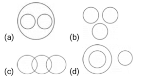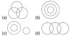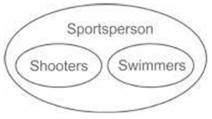 Venn – Diagram – Railway Reasoning part – 3Total Questions: 501. Select the venn diagram that best represents the relationship between the following classes. [RRB NTPC 30/12/2020 (Morning)]Crockery, Plate, Bowl(a)(b)(c)(d)Correct Answer: (b)Solution:[as both plate and bowl come under the category of crockery]2. In the given diagram, which number is in all the geometrical figures? [RRB NTPC 30/12/2020 (Evening)](a) 8(b) 5(c) 3(d) 4Correct Answer: (d) 4Solution:If we see the diagram carefully, only 4 is such a number which is lying inside of all the three geometrical figures.3. Select the venn diagram that best represents the relationship between [RRB NTPC 30/12/2020 (Evening)]Sports, Cricket, Cockroach(a)(b)(c)(d)Correct Answer: (c)Solution:4. In the given figure. How many hockey players are playing football? [RRB NTPC 04/01/2021 (Morning)](a) 41(b) 22(c) 35(d) 55Correct Answer: (a) 41Solution:From the above venn diagram, hockey players who also play football = 22 + 19 = 415. Which of the following diagrams best represents the relationship between Man Father and Brother? [RRB NTPC 04/01/2021 (Morning)](a)(b)(c)(d)Correct Answer: (d)Solution:6. Select the option that is best represented by the given venn diagram. [RRB NTPC 05/01/2021 (Morning)](a) Doctor, Man, Student(b) Family, Parents, Children(c) Table, Chair, Furniture(d) Gold, Silver, OrnamentsCorrect Answer: (a) Doctor, Man, StudentSolution:7. Select the venn diagram that best represents the relationship between the given set of classes. [RRB NTPC 05/01/2021 (Morning)]Apple, Mango, Fruits(a)(b)(c)(d)Correct Answer: (b)Solution:8. Select the venn diagram that best represents the relationship between the following classes. [RRB NTPC 05/01/2021 (Evening)]Sportsperson, Shooters, Swimmers(a)(b)(c)(d)Correct Answer: (a)Solution:9. Select the Venn diagram that best represents the relationship between the given set of classes. [RRB NTPC 08/01/2021 (Evening)]Students, Interns and Research scholars(a)(b)(c)(d)Correct Answer: (a)Solution:10. Select the venn diagram that best represents the relationship between the given set of classes. [RRB NTPC 08/01/2021 (Evening)]Short women, white - haired people, Indians(a)(b)(c)(d)Correct Answer: (b)Solution:Submit Quiz12345Next »