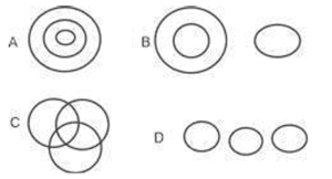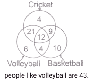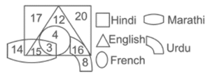 Venn – Diagram – Railway Reasoning part – 3Total Questions: 5041. The circle positioned above represents people who like cricket. The circle to your left represents people who like volleyball and the circle to your right represents people who like basketball. [RRB NTPC 19/01/2021 (Evening)]How many people like volleyball?(a) 44(b) 33(c) 22(d) 43Correct Answer: (d) 43Solution:42. Select the Venn diagram that best represents the relationship between the following classes. [RRB NTPC 22/01/2021 (Morning)]Guava , Potato , Vegetables(a)(b)(c)(d)Correct Answer: (c)Solution: Potatoes are vegetables and guava is a fruit.43. Select the Venn diagram that best represents the relationship between the following classes. [RRB NTPC 22/01/2021 (Morning)]Lawyers, Human Beings, Married People(a)(b)(c)(d)Correct Answer: (b)Solution:44. The diagram represents the number of students in a school, who can speak different languages? [RRB NTPC 22/01/2021 (Evening)]How many students can speak French?(a) 12(b) 7(c) 15(d) 4Correct Answer: (b) 7Solution:The student who speaks french = 4 + 3 = 7 Number present in the circle.45. There is a shop that sells both burgers and sandwiches. Some customers want only a burger and some want only a sandwich. There are some customers who want neither a burger nor a sandwich.The rest of the customers want both a burger and a sandwich. Which of the following venn diagrams correctly represent these situations? [RRB NTPC 22/01/2021 (Evening)](a)(b)(c)(d)Correct Answer: (b)Solution:46. In the given figure, the rectangle shows the number of students in 10th grade of a school. The parallelogram shows the number of girls in the school. The triangle shows the number of tennis playing students and the circle shows the number of boys playing cricket in the school. [RRB NTPC 23/01/2021 (Morning)]How many total students are there in 10th grade and how many of them play both cricket and tennis?(a) 63, 23(b) 63, 5(c) 59, 5(d) 59,19Correct Answer: (b) 63, 5Solution:Students in 10th grade = 25 + 12 + 11 + 5 + 3 + 7 = 63 The students of 10th grade who play both tennis and cricket are the area common in rectangle, triangle and circle. It is represented by the number = 547. Select the Venn diagram that best represents the relationship between the following classes. [RRB NTPC 23/01/2021 (Morning)]Players , Humans , Students(a) 1(b) 2(c) 4(d) 3Correct Answer: (b) 2Solution:48. Select the Venn diagram that best represents the relationship between man, smokers and cricketers. [RRB NTPC 23/01/2021 (Evening)](a) C(b) A(c) D(d) BCorrect Answer: (a) CSolution:49. Select the Venn diagram that best represents the relationship between words, letters and sentences. [RRB NTPC 23/01/2021 (Evening)](a) C(b) B(c) D(d) ACorrect Answer: (d) ASolution:Logic : As group of letters make a word and resultantly a group of words make a sentence. So figure A justifies the relation Hence option(d) is the correct answer.50. Select the Venn diagram that best represents the relationship between the given classes. [RRB NTPC 25/01/2021 (Morning)]Mammals , Tigers , Cows(a) 4(b) 3(c) 1(d) 2Correct Answer: (b) 3Solution:Submit Quiz« Previous12345