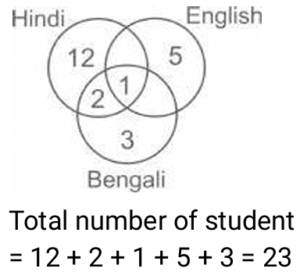 7. In a group of class, 6 students can speak English, 15 students can speak Hindi and 6 can speak Bengali. Nobody can speak any other language. If 2 students in the class can speak two languages and one person can speak all the three languages, then how many students are there in the class? [RRB NTPC 05/03/2021 (Morning)]