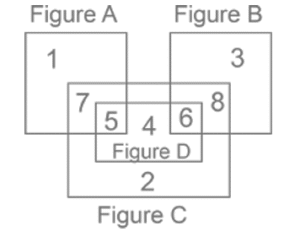 9. The following figure is a combination of 4 figures. A,B,C and D. Figure A represents people who are pizza lovers while figure B represents burger lovers. Figure C and D represent noodle and dumpling lovers respectively . According to the figure below. What does region 5 depict ? [RRB NTPC 05/03/2021 (Evening)]