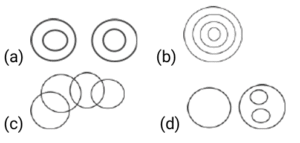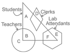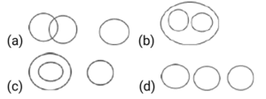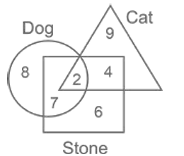 Venn – Diagram – Railway Reasoning part – 5Total Questions: 5021. In the given figure, the circle represents persons who are ‘teachers’, the triangle represents persons who are ‘Students’, the diamond represents persons who are ‘clerks’ and the hexagon represents persons who are ‘lab attendants’. [RRB NTPC 13/03/2021 (Evening)]Based on the figure, select the region that represents persons who are only teachers.(a) A(b) C(c) F(d) BCorrect Answer: (b) CSolution:C are only teachers .22. How many stones are neither Dog nor Cat? [RRB NTPC 13/03/2021 (Evening)](a) 9(b) 6(c) 7(d) 8Correct Answer: (b) 6Solution:The stones are neither Dog nor Cat = 623. Select the Venn diagram that best represents the relationship between the following classes. [RRB NTPC 14/03/2021 (Morning)]Birds, Ostriches, Bats (a)(b)(c)(d)Correct Answer: (a)Solution:24. Select the Venn diagram that best represents the relationship between the given set of classes. [RRB NTPC 19/03/2021 (Morning)]Paragraph, Letter, Word, Sentence(a)(b)(c)(d)Correct Answer: (b)Solution:25. Select the venn diagram that best represents the relationship between the given set of classes: [RRB NTPC 19/03/2021 (Morning)]Printer, Computer, Machine(a)(b)(c)(d)Correct Answer: (c)Solution:Printers and computers are machines but they are different from each other.26. Select the Venn diagram that best represents the relationship between the following classes. [RRB NTPC 21/03/2021 (Morning)]Humans, Birds. Mammals(a)(b)(c)(d)Correct Answer: (c)Solution:Humans are mammals and bird are aves.27. Select the Venn diagram that best represents the relationship between the following classes. [RRB NTPC 21/03/2021 (Morning)]Food, Beverage, Fruit, Cola, Juice(a)(b)(c)(d)Correct Answer: (d)Solution:28. Select the Venn diagram that best represents the relationship between the following classes. [RRB NTPC 21/03/2021 (Morning)]Solids, Liquids, Gasses(a)(b)(c)(d)Correct Answer: (d)Solution:All are states of matter but they are different to each other.29. In the following diagram, the triangle represents the students who want to have Dosa in their lunch. The rectangle represents the students who want to have sandwich in their lunch.The circle represents the students who want to have pizza in their lunch. The square represents the students who want to have Idli in their lunch. The hexagon represents those students who want to have Puri Sabji at the time of Lunch. [RRB NTPC 21/03/2021 (Evening)]How many students want to have Dosa, sandwich and pizza, all three in their lunch?(a) 15(b) 29(c) 18(d) 25Correct Answer: (d) 25Solution:Students want to have Dosa, sandwich and pizza, all three in their lunch are represented by the common region in triangle, rectangle and circle and the number represented is 25.30. In the following Venn diagram, the rectangle represents engineers, the circle represents the people who live in urban areas and the triangle represents the people who are in government jobs. Which letter represents engineers who live in urban areas and in government jobs? [RRB NTPC 27/03/2021 (Morning)](a) C(b) B(c) A(d) DCorrect Answer: (a) CSolution:Engineers, who live in urban areas and in government jobs are the region common in rectangle circle and triangle and represented by the letter c.Submit Quiz« Previous12345Next »