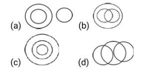 Venn – Diagram – Railway Reasoning part – 6Total Questions: 6211. Select the Venn diagram that best represents the relationship between the given set of classes. [RRB NTPC 26/07/2021 (Morning)]Horse, Elephant, Herbivore(a)(b)(c)(d)Correct Answer: (b)Solution:The Venn diagram that best represents the relationship between the given set of classes. Horse, Elephant, Herbivore is :As both Horse and Elephant are Herbivores.12. In a group of people in a party, 18 people can speak in English , 20 can speak in Hindi, and 10 can speak in Bengali, 11 people in the group can speak in English and Hindi, 6 can speak in Bengali and Hindi, and 7 can speak in Bengali and English . 5 people can speak in all three languages. [RRB NTPC 26/07/2021 (Evening)]How many people are there in the group?(a) 29(b) 33(c) 48(d) 60Correct Answer: (a) 29Solution:Total people in the group = 5 + 2 + 8 + 1 + 2 + 6 + 5 = 2913. Study the given diagram and answer the question that follows. The numbers in the diagram represent the counts in that particular category. [RRB NTPC 26/07/2021 (Evening) ]How many planets are both papers and lions?(a) 7(b) 4(c) 5(d) 2Correct Answer: (d) 2Solution:Planets are both papers and lions are the common region of triangle , circle and rectangle. And the number represents it is 2.14. Which of the following options is best depicted by the given Venn diagram? [RRB NTPC 31/07/2021 (Morning)](a) Fathers, Infants , Males(b) Rulers, Men, Engineers(c) Females, Wives, Doctors(d) Mothers, Actress, BoyCorrect Answer: (d) Mothers, Actress, BoySolution:All actresses are mothers but boys are different from others.15. Select the Venn diagram that best represents the relationship between the following classes. [RRB NTPC 31/07/2021 (Morning)]Sisters, Women, Wives(a)(b)(c)(d)Correct Answer: (b)Solution:All womens are sister and wife , but some sister are wives16. In the given figure, the circle represents married men, triangle represents working men, and rectangle represents adult. Which region represents married men who are also adult only? [RRB JE 22/05/2019 (Afternoon)](a) 6(b) 7(c) 5(d) 2Correct Answer: (b) 7Solution:From the question figure it is clearly seen that 7 represents married men who are also adult only.17. Choose the figure that best represents the relationship among the classes given below. Pharmacists, Professionals, Architects, Carpenters [RRB JE 22/05/2019 (Evening)](a)(b)(c)(d)Correct Answer: (c)Solution:18. Choose the figure that best represents the relationship among the classes given below. House, Brick, Bridge [RRB JE 23/05/2019 (Morning)](a)(b)(c)(d)Correct Answer: (c)Solution:19. Choose the figure that best represents the relationship among the classes given below. [RRB JE 23/05/2019 (Afternoon)]Mother, Children, Human, Father(a)(b)(c)(d)Correct Answer: (c)Solution:20. Choose the figure that best represents the relationship among the classes given below. [RRB JE 23/05/2019 (Evening)]Potato, Food, Carrot, Vegetable(a)(b)(c)(d)Correct Answer: (a)Solution:Submit Quiz« Previous1234567Next »