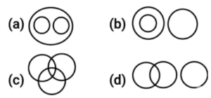 Venn Diagram (SSC REASONING) Part-2Total Questions: 5011. Swimming, Running, Sports [SSC CGL 19/07/2023 (4th shift)](a)(b)(c)(d)Correct Answer: (c)Solution:12. Dialect, Language, Communication [SSC CGL 19/07/2023 (4th shift)](a)(b)(c)(d)Correct Answer: (c)Solution:13. football fans , Cricket fans, Doctors [SSC CGL 20/07/2023 (1st shift)](a)(b)(c)(d)Correct Answer: (a)Solution:14. Dolphins, Sharks, Sea creatures [SSC CGL 20/07/2023 (4th shift)](a)(b)(c)(d)Correct Answer: (b)Solution:15. Mothers, Sisters and Females [SSC CGL 20/07/2023 (4th shift)](a)(b)(c)(d)Correct Answer: (b)Solution:16. Dirham, Dubai, Currency [SSC CGL 21/07/2023 (1st shift)](a)(b)(c)(d)Correct Answer: (b)Solution:17. Women, Mothers, Singers [SSC CGL 21/07/2023 (1st shift)](a)(b)(c)(d)Correct Answer: (c)Solution:18. Woman, Humans, Lions [SSC CGL 21/07/2023 (4th shift)](a)(b)(c)(d)Correct Answer: (d)Solution:19. Laptops, Electronics, Microwave ovens [SSC CGL 21/07/2023 (4th shift)](a)(b)(c)(d)Correct Answer: (d)Solution:20. Sports, Badminton, Hockey [SSC CGL 24/07/2023 (1st shift)](a)(b)(c)(d)Correct Answer: (a)Solution:Submit Quiz« Previous12345Next »