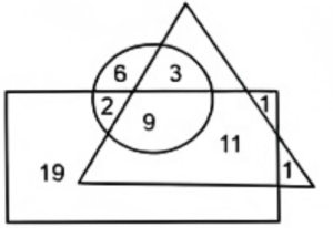 Solution:As we can observe, 3 & 9 are common in the triangle and the circle representing teachers & ladies. Now, we want married ladies for which we have to take a number which should not be in the rectangle (representing unmarried peoples) but common to both triangle and circle. Hence, 3 is the answer.