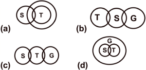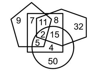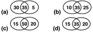 Venn Diagram (SSC REASONING)Total Questions: 1511. In the following Venn diagram, the hexagon stands for ‘police officers’, the pentagon stands for ‘graduates’ , the circle stands for ‘females’ , and the square stands for ‘Indians’. The given numbers represent the number of persons in that particular category. [SSC CGL 11/04/2022 (Afternoon)]How many Indian police officers are graduates but NOT females? (a) 11(b) 8(c) 13(d) 19Correct Answer: (a) 11Solution:Clearly, the common intersection point of pentagon, hexagon and square (excluding circle) is 11. So, the number of Indian police officers who are graduates but NOT females = 1112. Read the statements disregarding known facts and then from the following four options, identify the Venn diagram that correctly represents the statements. [SSC CGL 20/08/2021 (Afternoon)]Statements : Some stools (S) are numbers (T) Some numbers(T) are grinders (G) (a)(b)(c)(d)Correct Answer: (c)Solution:shows the correct representation of the given statement.13. In the given Venn diagram, 'A' denotes 'dogs', 'B' denotes 'cats', 'C' denotes 'fishes', 'D' denotes 'mongooses', 'E' denotes 'rats', and 'F' denotes 'rabbits'. Which area represents the group of only dogs, fishes and mongooses ? [SSC CHSL 16/10/2020 (Morning)](a) C(b) D(c) A(d) FCorrect Answer: (b) DSolution:‘D’ represents the group of only dogs, fishes and mongooses.14. Among 160 players in a tournament, 57 did not participate in any of the three games, i.e. Cricket , Hockey and Badminton. A total of 37 players participated in only one game, 10 players participated in both Cricket and Hockey but not in badminton , 9 players participated in both Hockey and Badminton but not in Cricket , and 13 players participated in both Cricket and Badminton but not in Hockey. How many students participated in all the three games? [SSC CGL 06/03/2020 (Evening)](a) 30(b) 34(c) 38(d) 32Correct Answer: (b) 34Solution:Total number of players in the tournament = 160 Players that actually take part in the tournament = 160 - 57 = 103 Total players who participated in only one game = 37 Players that only played Cricket and Hockey = 10 Players that only played Cricket and Badminton = 13 Players that only played Badminton and Hockey = 9 Thus, students participated in all the three games = 103 - ( 37 + 13 + 10 + 9) = 3415. There are 70 students in a class, of them 50 students like cricket, 35 like both cricket and football, and some like only football. Select the venn diagram that correctly represents the given information. [SSC CPO 13/12/2019 (Evening)](a)(b)(c)(d)Correct Answer: (d)Solution:Total students = 70 Cricket = 50 Cricket and football = 35 Only cricket = 50 - 35 = 15 Only football = 70 - 50 = 20Submit Quiz« Previous12