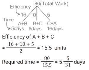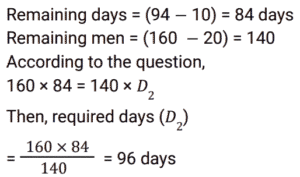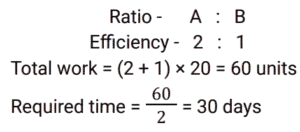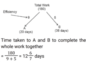 Work and Time (SSC) (Part-4)Total Questions: 501. A can complete a piece of work in 20 days. B can complete the same work in 36 days. If A and B work together, then the number of days required to complete the work is: [SSC MTS 08/09/2023 (1st Shift)](a)(b)(c)(d)Correct Answer: (b)Solution:2. A can do a piece of work in 10 days and B can do it in 15 days. They work together for 2 days and then A leaves. How long will B take to finish the remaining work ? [SSC MTS 08/09/2023 (3rd Shift)](a) 10 days(b) 22 days(c) 12 days(d) 5 daysCorrect Answer: (a) 10 daysSolution:3. Mohan can complete a piece of work in 24 days. He worked for 6 days and left the work. Thereafter. Sohan finished the remaining work in 21 days. In how many days can Mohan and Sohan together complete it ? [SSC MTS 11/09/2023 (1st Shift)](a)(b)(c)(d)Correct Answer: (a)Solution:4. In a fort, 160 men had food for 94 days. After 10 days, 20 men left the fort. How long (in days) would the food last at the same rate ? [SSC MTS 11/09/2023 (1st Shift)](a) 84(b) 90(c) 96(d) 100Correct Answer: (c) 96Solution:5. A is twice as efficient as B at completing a task, and together they can finish the task in 20 days. How many days would A alone take to complete the task ? [SSC MTS 12/09/2023 (1st Shift)](a) 34(b) 30(c) 28(d) 32Correct Answer: (b) 30Solution:6. 100 workers working 8 hours a day can dig a canal 2000 metres long in 25 days. Find the number of workers required to dig a similar canal of 2800 metres long in 32 days working 5 hours a day. [SSC MTS 12/09/2023 (1st Shift)](a) 170(b) 180(c) 175(d) 165Correct Answer: (c) 175Solution:7. A and B can do a piece of work in 10 days. B and C can do the same work in 15 days. If A is twice as good a workman as C. find in what time B alone can do the work (in days). [SSC MTS 12/09/2023 (3rd Shift)](a) 10(b) 25(c) 20(d) 30Correct Answer: (d) 30Solution:8. A certain number of men complete a piece of work in 60 days. If there were 8 more men called, then the work can be finished in 10 days less than usual. The number of men originally was: [SSC MTS 12/09/2023 (3rd Shift)](a) 40(b) 30(c) 60(d) 50Correct Answer: (a) 40Solution:9. A and B can do a piece of work in 5 days. B and C can do the same work in 8 days, while C and A can do it in 16 days. Find the time (in days) in which A, B and C can finish the work, working together. [SSC MTS 13/09/2023 (2nd Shift)](a)(b)(c)(d)Correct Answer: (d)Solution:10. A can complete a task in 10 days. He worked for 4 days and then stopped. B completed the remaining work in 9 days. In how many days can A and B together complete the task ? [SSC MTS 13/09/2023 (3rd Shift)](a) 6 days(b) 5 days(c) 4 days(d) 7 daysCorrect Answer: (a) 6 daysSolution:Submit Quiz12345Next »