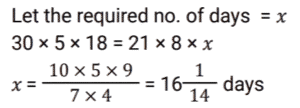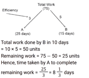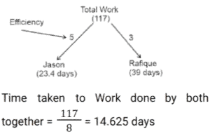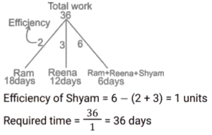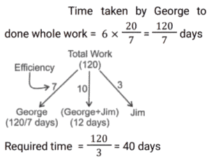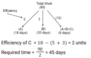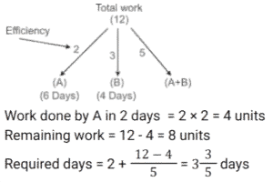 Work and Time (SSC) (Part-4)Total Questions: 5021. A and B can finish a work in 6 days and 4 days, respectively. A alone worked on it for 2 days. Thereafter, B joined him. How much total time was taken by them to finish the work ? [SSC CHSL 07/08/2023 (2nd Shift)](a)(b)(c)(d)Correct Answer: (a)Solution:22. A and B together can complete a piece of work in 15 days and B alone can complete it in 21 days. In how many days can A complete it alone ? [SSC CHSL 08/08/2023 (2nd Shift)](a)(b)(c)(dCorrect Answer: (b)Solution:23. Three people A, B and C worked together and finished a work in 9 days. If A alone can finish the same work in 18 days, B alone in 30 days, then the number of days C alone will take is: [SSC CHSL 09/08/2023 (4th Shift)](a) 36 days(b) 45 days(c) 40 days(d) 54 daysCorrect Answer: (b) 45 daysSolution:24. X, Y and Z can complete a piece of work in 20, 12 and 28 days, respectively. If all work together, the approximate number of days to complete the work will be: [SSC CHSL 10/08/2023 (2nd Shift)](a) 6(b) 7(c) 4(d) 5Correct Answer: (a) 6Solution: 25. George can do 35% of the total work in 6 days, Jim and George together completed a piece of work in 12 days. In how many days could Jim, working alone, complete the entire task ? [SSC CHSL 10/08/2023 (3rd Shift)](a) 36(b) 40(c) 42(d) 45Correct Answer: (b) 40Solution:26. 30 women working 5 hours a day can complete a work in 18 days. In how many days will 21 women working 8 hours a day complete the same work? [SSC CHSL 11/08/2023 (1st Shift)](a)(b)(c)(d)Correct Answer: (c)Solution:27. If 18 mechanics can repair 90 cars in 10 days, how many mechanics will be required to repair 150 cars in 12 days ? [SSC CHSL 11/08/2023 (4th Shift)](a) 25(b) 30(c) 20(d) 27Correct Answer: (a) 25Solution:28. A can finish a work in 25 days, and B can do the same work in 15 days. B worked for 10 days and left the job. A alone can finish the remaining work in how many days ? [SSC CHSL 14/08/2023 (2nd Shift)](a)(b)(c)(d)Correct Answer: (c)Solution:29. Jason can do a piece of work alone in 23.4 days, while Rafique can do the same piece of work alone in 39 days. In how many days can the duo complete the same work if they work together? [SSC CHSL 14/08/2023 (3rd Shift)](a) 14.750(b) 14.625(c) 14.875(d) 14.375Correct Answer: (b) 14.625Solution:30. Ram can complete a piece of work in 18 days, Reena can complete the same work in 12 days, and with the help of Shyam, they finish the same work in six days. In how many days can Shyam alone complete the same work ? [SSC CHSL 14/08/2023 (4th Shift)](a) 42(b) 36(c) 30(d) 24Correct Answer: (b) 36Solution:Submit Quiz« Previous12345Next »