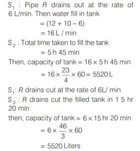 S3: Pipe R drains out (fully) the filled tank in 15 h 20 min. To know what is the capacity of the tank.