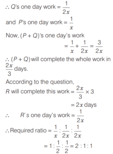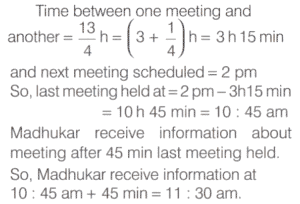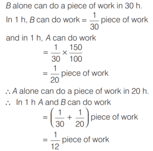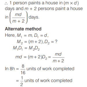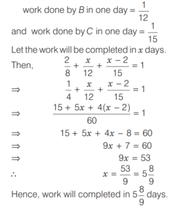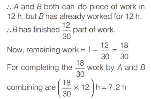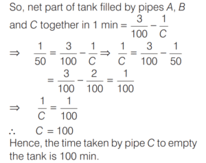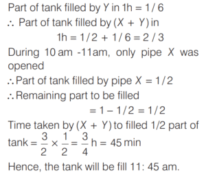 WORK-TIME AND UNITARY METHOD (CDS)Total Questions: 5321. A can do 50% more work than B in the same time. B alone can do a piece of work in 30 h. B starts working and had already worked for 12 h when A joins him. How many hours should B and A work together to complete the remaining work? [2016 (II) Evening Shift](a) 6 h(b) 12 h(c) 4.8 h(d) 7.2 hCorrect Answer: (d) 7.2 hSolution:We have, A can do 50% more work than B in same hour. 22. A tank can be filled by pipe X in 2 h and pipe Y in 6 h. At 10 am, pipe X was opened. At what time will the tank be filled if pipe Y is opened at 11 am? [2016 (II) Evening Shift](a) 12:45 pm(b) 5:00 pm(c) 11:45 am(d) 11:50 amCorrect Answer: (c) 11:45 amSolution:Part of tank filled by X in h = 1/223. Outside a meeting room, Madhukar was told by a person that each meeting takes place after 13/4 h. The last meeting has been over just 45 min ago and the next meeting will take place at 2 pm. At what time did Madhukar receive this information? [2016 (I) Morning Shift](a) 10 : 20 am(b) 11 : 30 am(c) 11 : 40 am(d) 11 : 50 amCorrect Answer: (b) 11 : 30 amSolution:24. Two pipes A and B can fill a tank in 60 min and 75 min, respectively. There is also an outlet C. If A, B and C are opened together, then the tank is full in 50 min. How much time will be taken by C to empty the full tank? [2016 (I) Morning Shift](a) 100 min(b) 110 min(c) 120 min(d) 125 minCorrect Answer: (a) 100 minSolution:Since, two pipes A and B fill a tank in 60 min and 75 min, respectively. 25. A and B are two taps which can fill a tank individually in 10 min and 20 min, respectively. However, there is a leakage at the bottom, which can empty a filled tank in 40 min. If the tank is empty initially, then how much time will both the taps take to fill the tank with leakage? [2015 (II) Evening Shift ](a) 2 min(b) 4 min(c) 5 min(d) 8 minCorrect Answer: (d) 8 minSolution:We have, tap A fill the tank in 10 min.26. If 4 men working 4 h per day for 4 days complete 4 units of work, then how many units of work will be completed by 2 men working for 2h per day in 2 days? [2015 (II) Evening Shift ](a) 2(b) 1(c) 1/2(d) 1/8Correct Answer: (c) 1/2Solution:4 men working 4 h per day for 4 days complete 4 units of work i.e. 4 units of work completed in (4 × 4 × 4) h.27. If m persons can paint a house in d days, then how many days will it take for (m + 2) persons to paint the same house? [2015 (II) Evening Shift ](a)(b)(c)(d)Correct Answer: (d)Solution:m persons paint a house ind days.28. The efficiency of P is twice that of Q, whereas the efficiency of P and Q together is three times that of R. If P Q, and R work together on a job, then in what ratio should they share their earnings? [2015 (I) Morning Shift ](a) 2 : 1 : 1(b) 4 : 2 : 1(c) 4 : 3 : 2(d) 4 : 2 : 3Correct Answer: (a) 2 : 1 : 1Solution:Let P can finish the work = x days, Q can finish the work = 2x days29. Pipe A can fill a tank in 3 h but there is a leakage also, due to which it takes 3.5 h for the tank to be filled. How much time will the leakage take in emptying the tank, if the tank is filled initially? [2014 (II) Evening Shift ](a) 21 h(b) 20 h(c) 18 h(d) 10.5 hCorrect Answer: (a) 21 hSolution:Given, pipe A can fill the tank in 3 h.30. A B, and C can do a piece of work individually in 8, 12 and 15 days, respectively. A and B start working together but A quits after working for 2 days. After this, C joins and works till completion of the work. In how many days, will the work be completed? [2014 (II) Evening Shift ](a) 3⁸⁄₉ days(b) 5⁸⁄₉ days(c) 5⅔ days(d) 6¹⁄₁₈ daysCorrect Answer: (b) 5⁸⁄₉ daysSolution:Work done by A in one day = 1/8Submit Quiz« Previous123456Next »