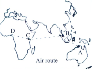 World Political Geography (UPSC) (Part-I)Total Questions: 5021. Assertion (A): Chile continues to be an important producer of copper in the world. [1999]Reason (R): Chile is endowed with the world's largest deposit of porphyry copper.(a) Both A and R are true and R is the correct explanation of A(b) Both A and R are true but R is not a correct explanation of A(c) A is true but R is false(d) A is false but R is trueCorrect Answer: (a) Both A and R are true and R is the correct explanation of ASolution:Assertion and reason both are correct, and the reason is the correct explanation of the assertion.Chile is the largest copper producer in the world. 35% of the total global production of copper is done by Chile, and the major deposit is of porphyry copper.22. Match the cities labelled as A, B, C and D in the given map with the names of cities and select the correct answer using the codes given below the names of cities: [1999]Name of citiesDarwinKualalumpurLagosNairobiSingaporeABCD(a)1243(b)2143(c)1452(d)4352(a)(b)(c)(d)Correct Answer: (a)Solution:‘A’ marked city on the map is Darwin in Australia.‘B’ marked city in the given map is Kuala Lumpur in Malaysia.‘C’ marked city on the map is Nairobi in Kenya.‘D’ marked city on the map is Lagos in Nigeria.23. A person of mixed European and Indian blood in Latin America is called a: [1999](a) Mulatto(b) Mestizo(c) Meiji(d) Mau MauCorrect Answer: (b) MestizoSolution:Mestizo originally meant a person of combined European and American Indian descent, regardless of where the person was born.24. Match List-I with List-II and select the correct answer using the codes given below the lists: [1999]List-I (Volcanic Mountain)List-II (Country)A. Mt. Rainier1. ItalyB. Etna2. MexicoC. Paricutin3. PhilippinesD. Taal4. U.S.A. ABCD(a)4213(b)4123(c)2143(d)4321(a)(b)(c)(d)Correct Answer: (b)Solution:Mt. Rainier is a volcanic mountain situated in the U.S.A.Mt. Etna is situated in Europe, Paricutin volcanic mountain is present in Mexico. Taal volcanic mountain is present in the Philippines.25. Consider the following provinces of former Yugoslavia: [2000]BosniaCroatiaSloveniaYugoslavia The correct sequence of these provinces from the east to west is:(a) 4, 1, 3, 2(b) 4, 1, 2, 3(c) 1, 4, 3, 2(d) 1, 4, 2, 3Correct Answer: (b) 4, 1, 2, 3Solution:The correct sequence from east to west is: Yugoslavia , Bosnia , Croatia , Slovenia.26. Which one of the following lakes forms an international boundary between Tanzania and Uganda? [2000](a) Chad(b) Malawi(c) Victoria(d) ZambeziCorrect Answer: (c) VictoriaSolution:Lake Victoria acts as the international boundary between Tanzania and Uganda. It is the largest lake in Africa and the 2nd widest freshwater body in the world.27. A class of animals known as Marsupials is a characteristic feature of: [2001](a) Africa(b) Australia(c) South America(d) South-east AsiaCorrect Answer: (b) AustraliaSolution:Marsupials are a group of mammals that commonly have pouches or a pocket of skin, where the mother nurses their young. These marsupials are found in Australia. The common examples of marsupials are Kangaroo and Koala.28. The above map is the Union Territory of: [2001](a) Chandigarh(b) Daman and Diu(c) Dadra and Nagar Haveli(d) PondicherryCorrect Answer: (c) Dadra and Nagar HaveliSolution:The given map represents the Union Territory of Dadra and Nagar Haveli in western India. The capital is Silvassa, and the major language of this Union Territory is Gujarati. The Union Territory of Dadra and Nagar Haveli and the Union Territory of Daman and Diu were merged into a single UT of Dadra and Nagar Haveli and Daman and Diu on 26th January 2020.29. Match List-I with List-II and select the correct answer using the codes given below the lists: [2001]List-I (Local Wind)List-II (Region)A. Fohn1. ArgentinaB. Sarmun2. KurdistanC. Santa Ana3. CaliforniaD. Zonda4. Alps ABCD(a)2413(b)4231(c)2431(d)4213(a)(b)(c)(d)Correct Answer: (b)Solution:Föhn is the warm and dry wind of the Alps region. Sarmun is the local wind of the Kurdistan region. Santa Ana is the local wind of California. Zonda is the local wind of Argentina.30. The given map shows four towns of the Central Asian region marked as 1, 2, 3, and 4. Identify these from the following lists and select the correct answer using the codes given below: [2001]Towns:A. BishkekB. AshikhabadC. TashkentD. DushanbeCodes: ABCD(a)3124(b)3142(c)1324(d)1342(a)(b)(c)(d)Correct Answer: (a)Solution:Ashgabat is marked as '1'.Tashkent is marked as '2'.Bishkek is marked as '3'.Dushanbe is marked as '4' in the given map.Submit Quiz« Previous12345Next »