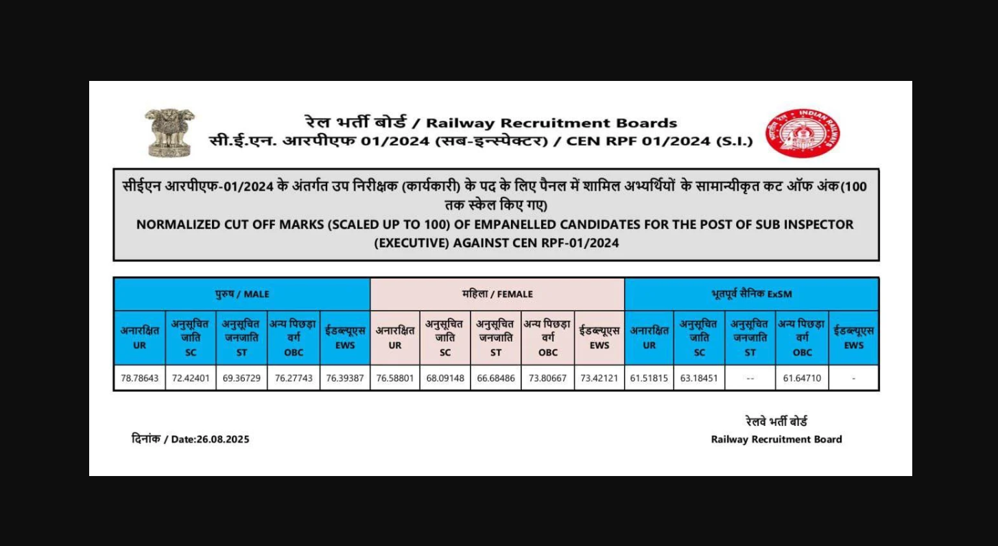 RPF Sub Inspector Final Result 2025 | Download Result |